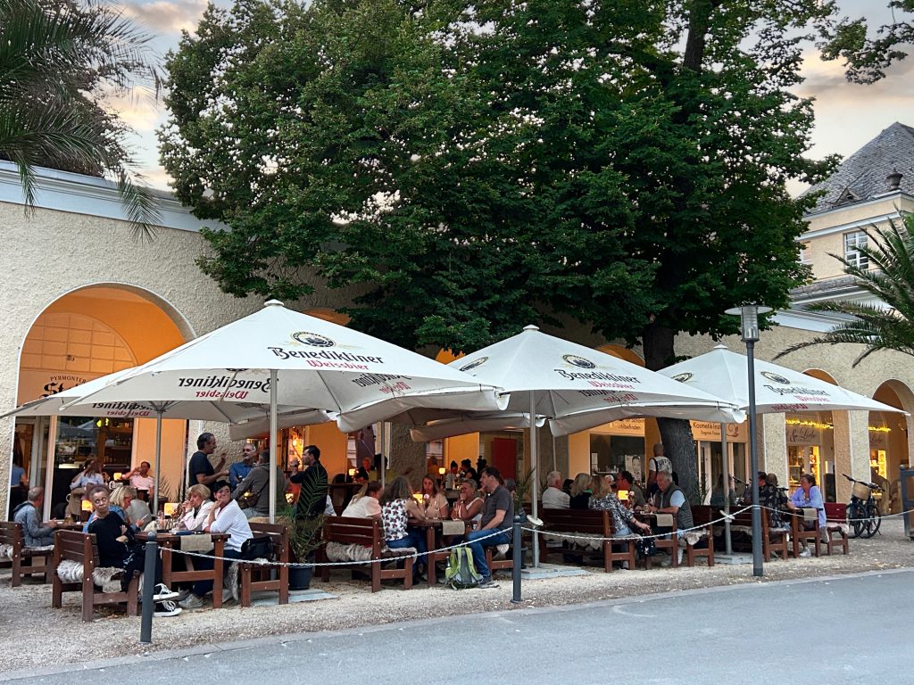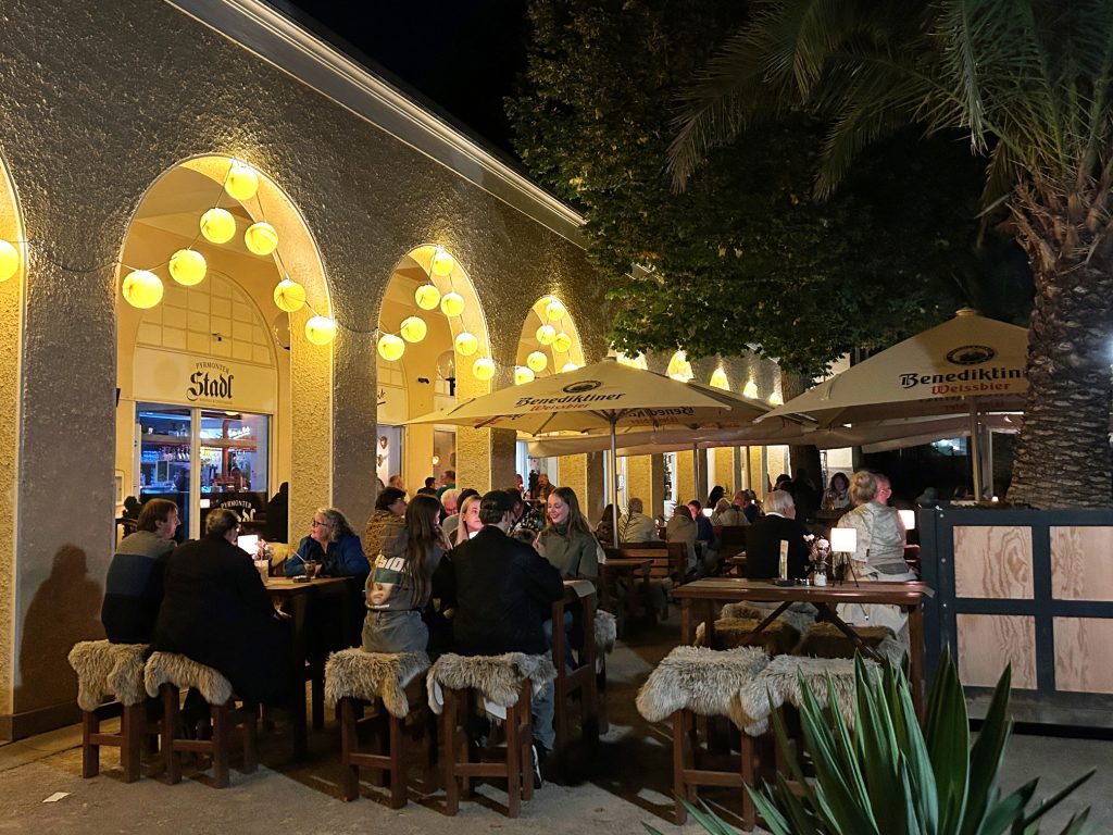 Der Stadl ist ein gemütlicher Treffpunkt für Jung und Alt direkt unter den Arkaden. Ein großer Außenbereich im Biergartenstil bietet viel Platz mit Blick auf die Hauptallee.